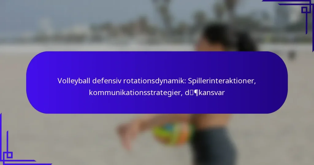I volleyball afhænger de defensive rotationsdynamikker af nøglespillerinteraktioner, hvor kommunikation og positionering spiller vitale roller. At forstå individuelle dækansvar er essentielt for effektivt teamwork, hvilket gør det muligt for spillerne at støtte hinanden og tilpasse sig det hurtige tempo i spillet. Ved at fremme klar kommunikation kan hold forbedre deres defensive strategier og opretholde robust dækning på banen. Key sections in the article: Toggle Hvad er de nøgleinteraktioner mellem spillere under defensive rotationer? Roller for hver spiller i defensiv positionering…