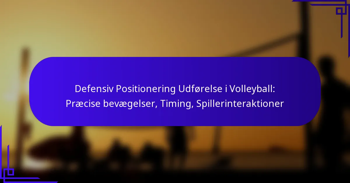Defensiv positionering i volleyball er afgørende for at modvirke modstandernes angreb og forbedre holdets præstation. Det kræver præcise bevægelser, nøjagtig timing og problemfri kommunikation blandt spillerne for effektivt at forudse og reagere på spil. At mestre disse elementer maksimerer ikke kun den defensive effektivitet, men fremmer også større sammenhold på banen.