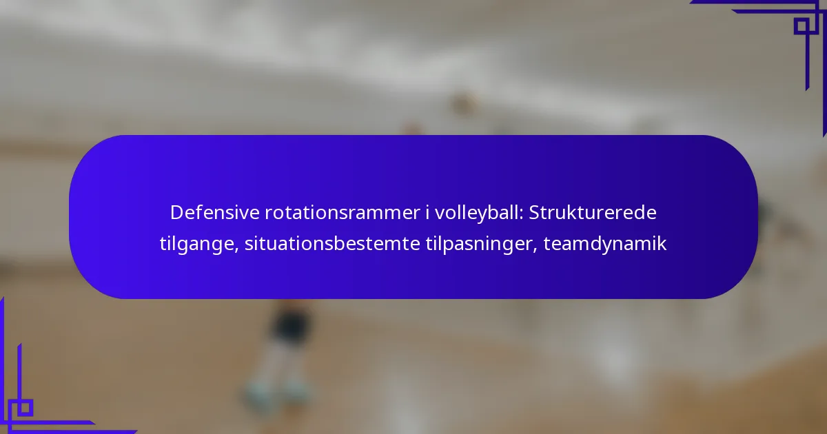 Defensive rotationsrammer i volleyball er strukturerede systemer, der guider, hvordan spillere positionerer sig på banen under defensive spil. Disse rammer er essentielle for at maksimere holdets effektivitet og tilpasningsevne i forskellige spilsituationer.