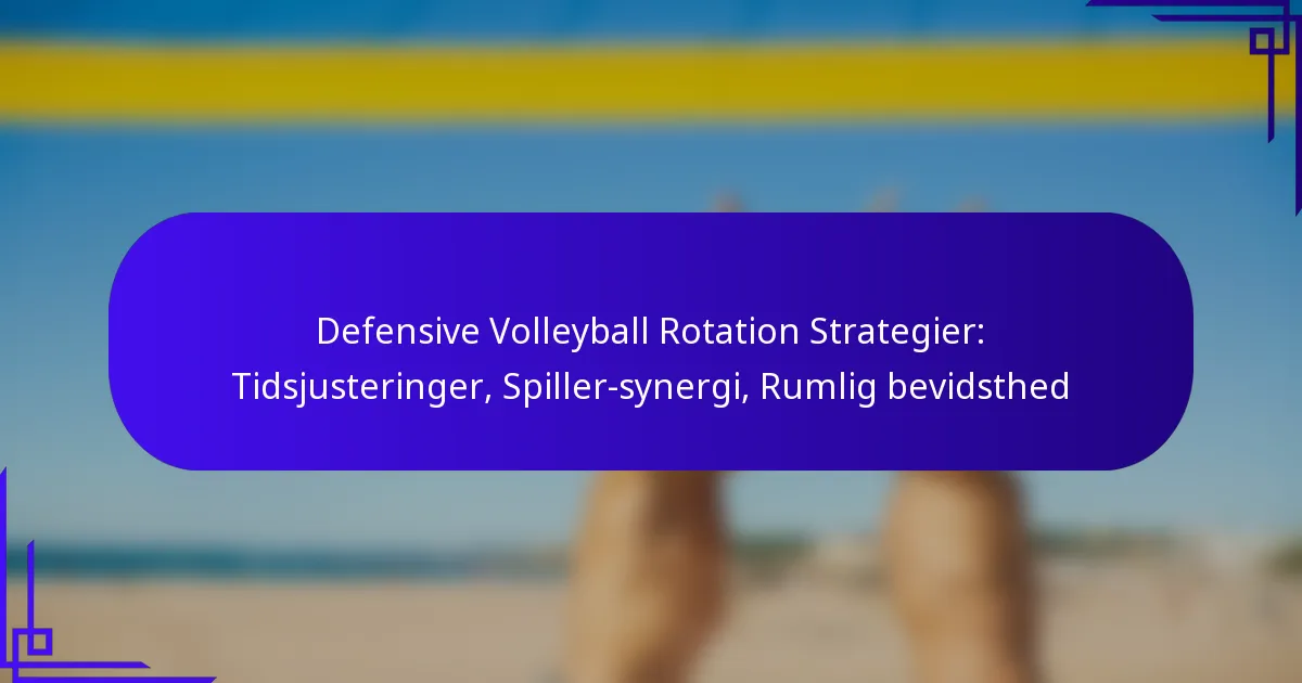 Defensive volleyball rotationsstrategier er afgørende for at optimere holdets præstation og sikre effektiv dækning af banen. Ved at fokusere på tidsjusteringer, spiller-synergi og rumbevidsthed kan hold forbedre deres evne til at modvirke modstandernes angreb og forbedre deres samlede defensive kapaciteter.